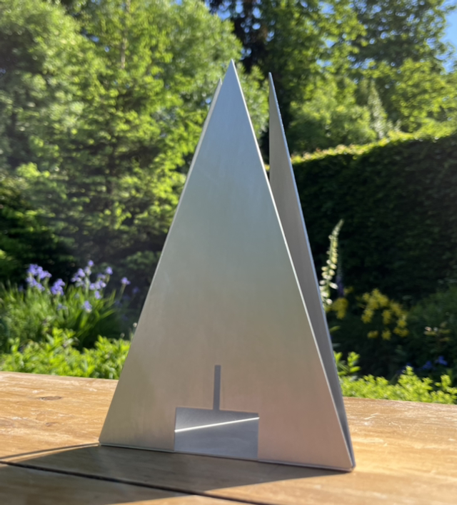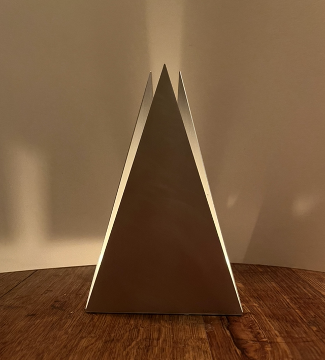 Tall pyramid candle holder / table sculpture (candle or LED sphere included).